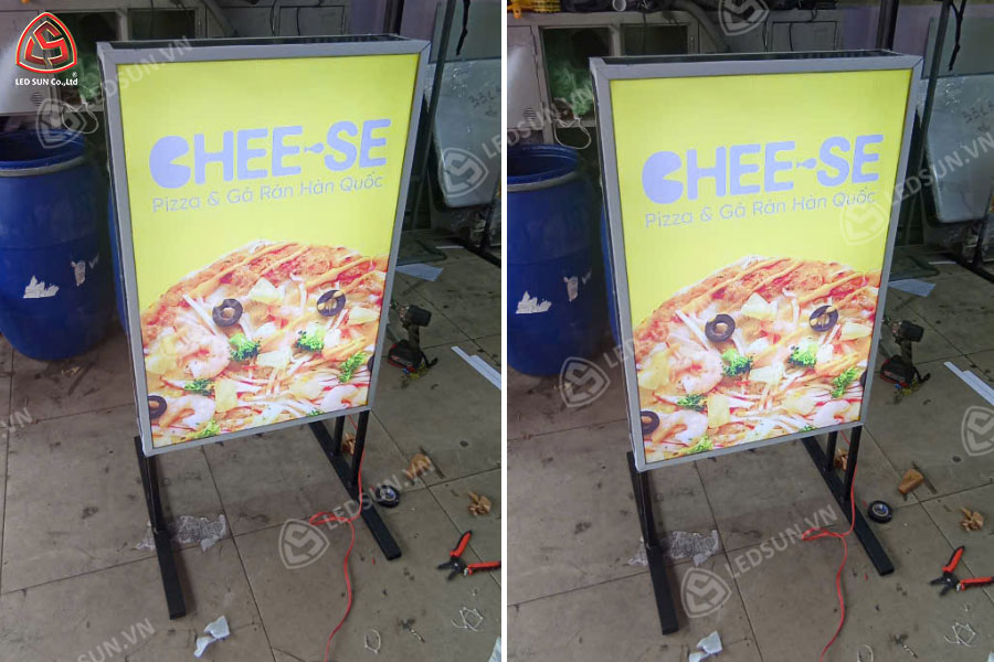 Hộp đèn bạt có chân cho quán pizza