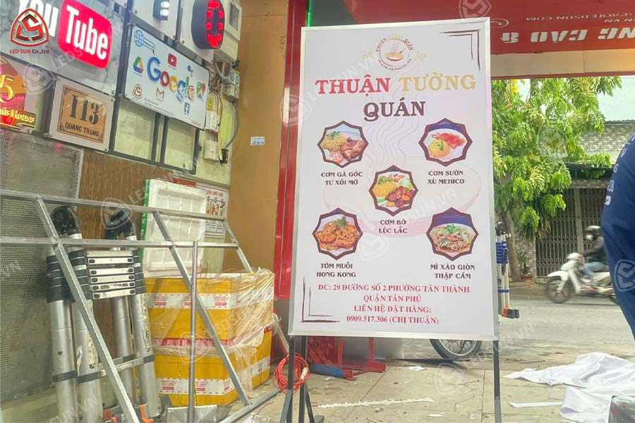 Hộp đèn bạt có chân cho quán cơm