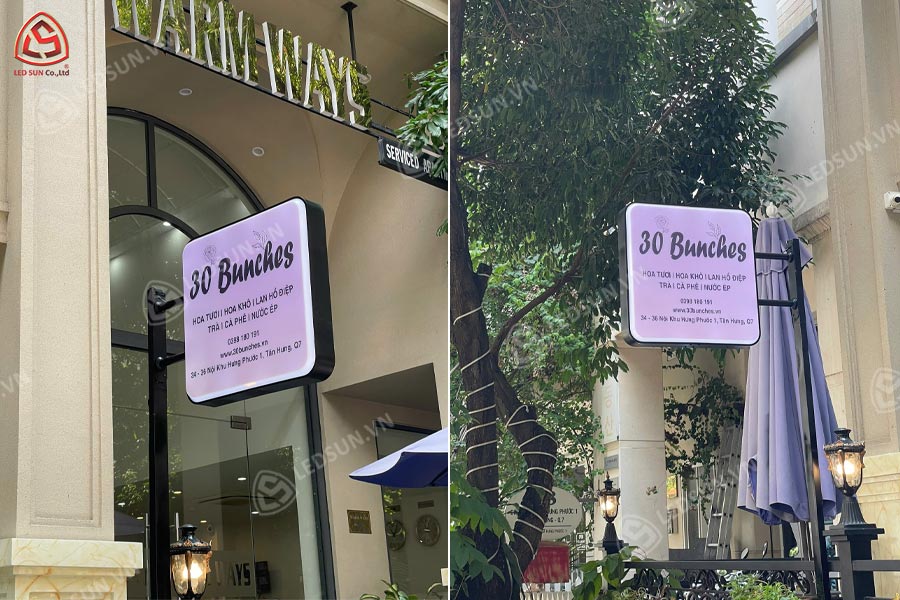 – Độ bền cao: Sử dụng mica hoặc PVC cao cấp cùng khung kim loại chắc chắn, hộp đèn hút nổi chịu được mưa nắng, tia UV và giữ được màu sắc, độ sáng lâu dài.
